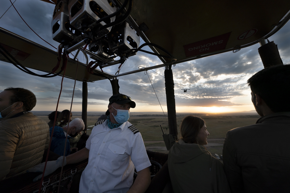 Sergei calling the shots as the balloon rises over the MaraAt this point, the only people staying masked in the basket, but recall that everyone has had a recent negative COViD test and been vaccinated, and we were outside – so maybe we were too uptight. But I figure we respect the rules.