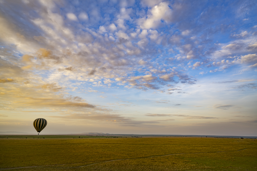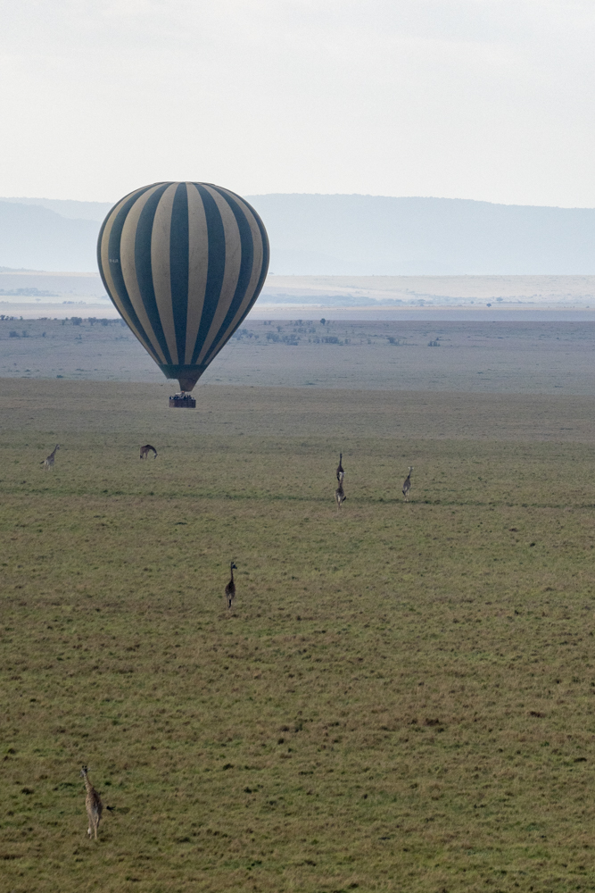Balloons over the MaraA tawny eagle keeps watch.Giraffes on the MaraFreaking out a wildebeest