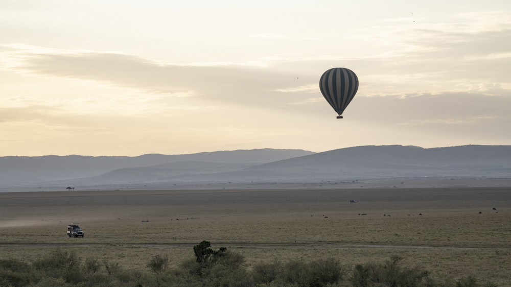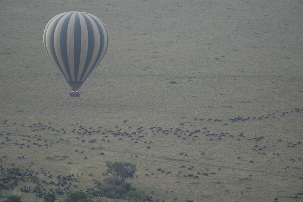 There are a lot of wildebeest.What are you doing up there?Balloons and wildebeest, the theme of the morning.