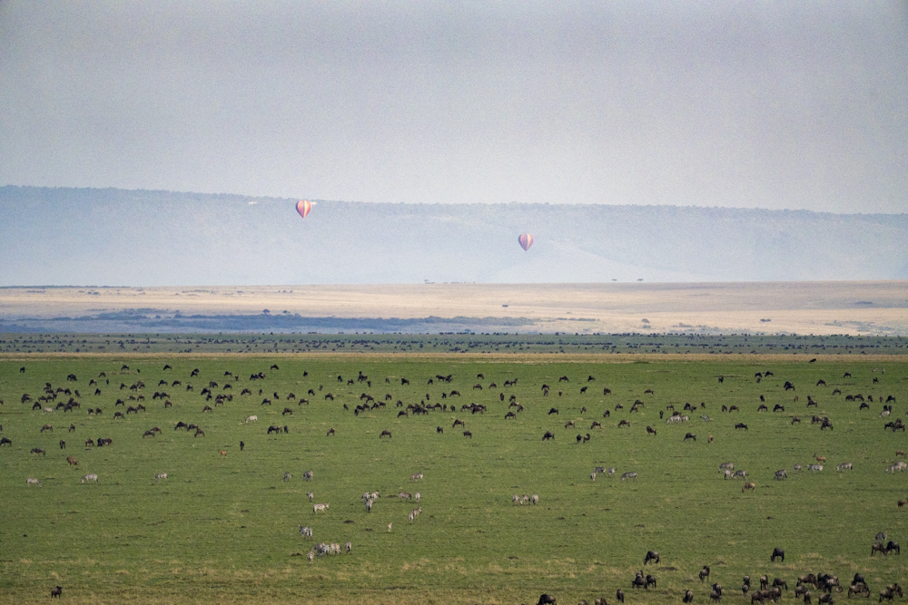 The great migration, which passes through the Mara, is host to about 1.5M wildebeest and about .5M Zebra (plus untold flies). It supports an incredible diversity of life and culture. Imagine North america when 30 times more bison (60M) roamed the praries . . .