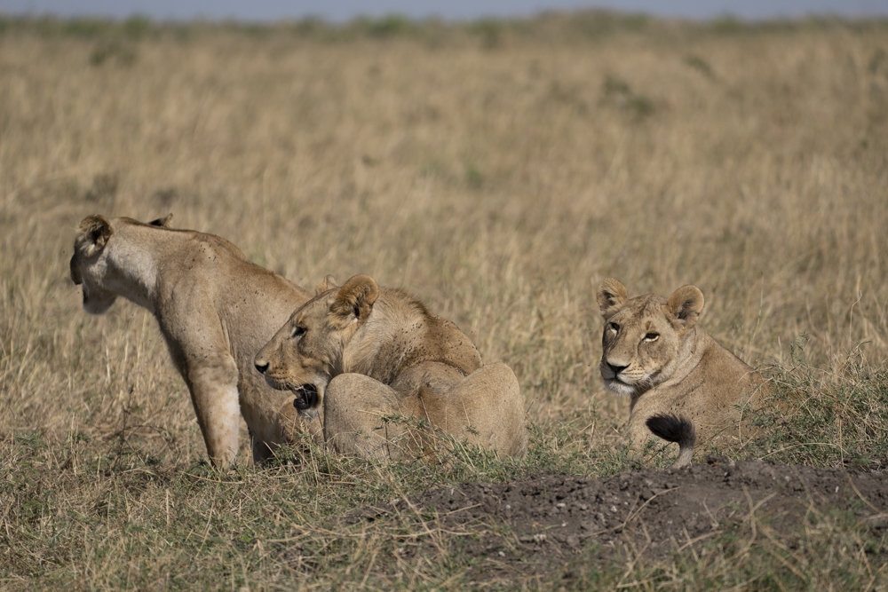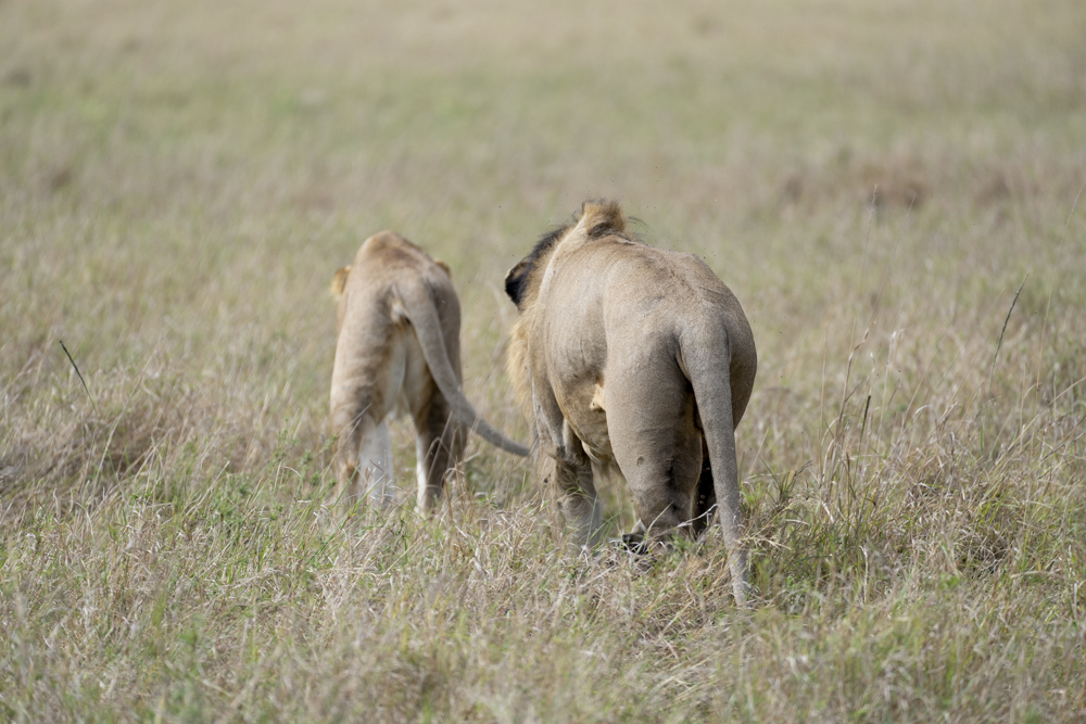 They eventually wandered off to nap, and we quickly found a different pride of a male and two females (all juvenille/siblings) on the hunt. This went on for a long time, but eventually, they, too retired to nap-land withou hunting. The joke is that that’s what lions to – lyin’ around.
