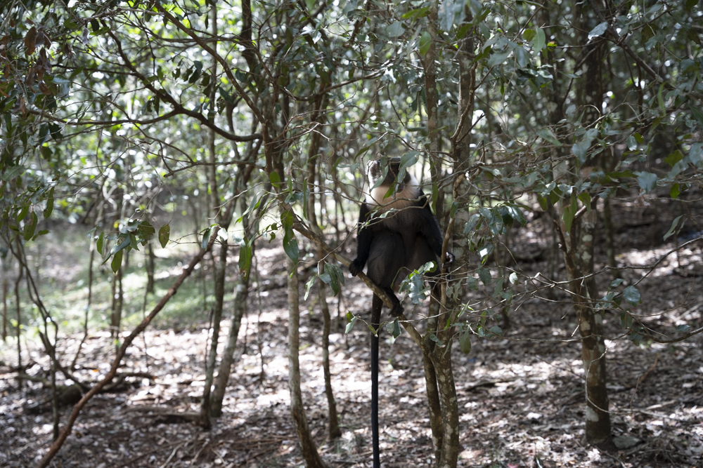 Because we were travelling in a more urban area, I was keeping my camera in its bag. I saw a Sykes’ monkey in a tree, really close, and wanted to get the shot so reached into my bag to get the camera out. The monkey just kept eyes on me. I snapped a shot, then he moved.