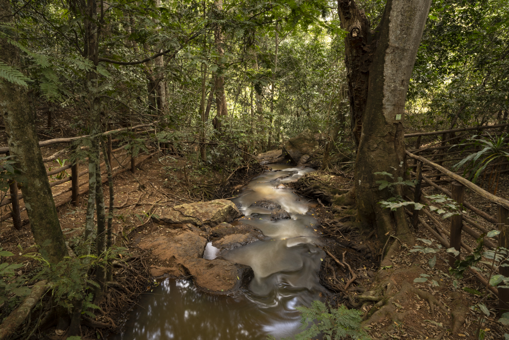 I got some decent time exposure of the waterfall (propping the camera on a rock) then we walked downstream to the Karura caves.