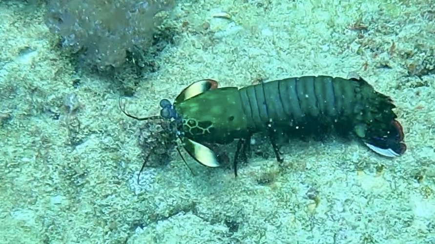 Back on the boat, we relaxed for a 40 minute surface interval, then at this point really comfortable, I went over the side for our last dive. By this time we had moved up to primary spot on the mooring, and we descended really quickly and efficiently.