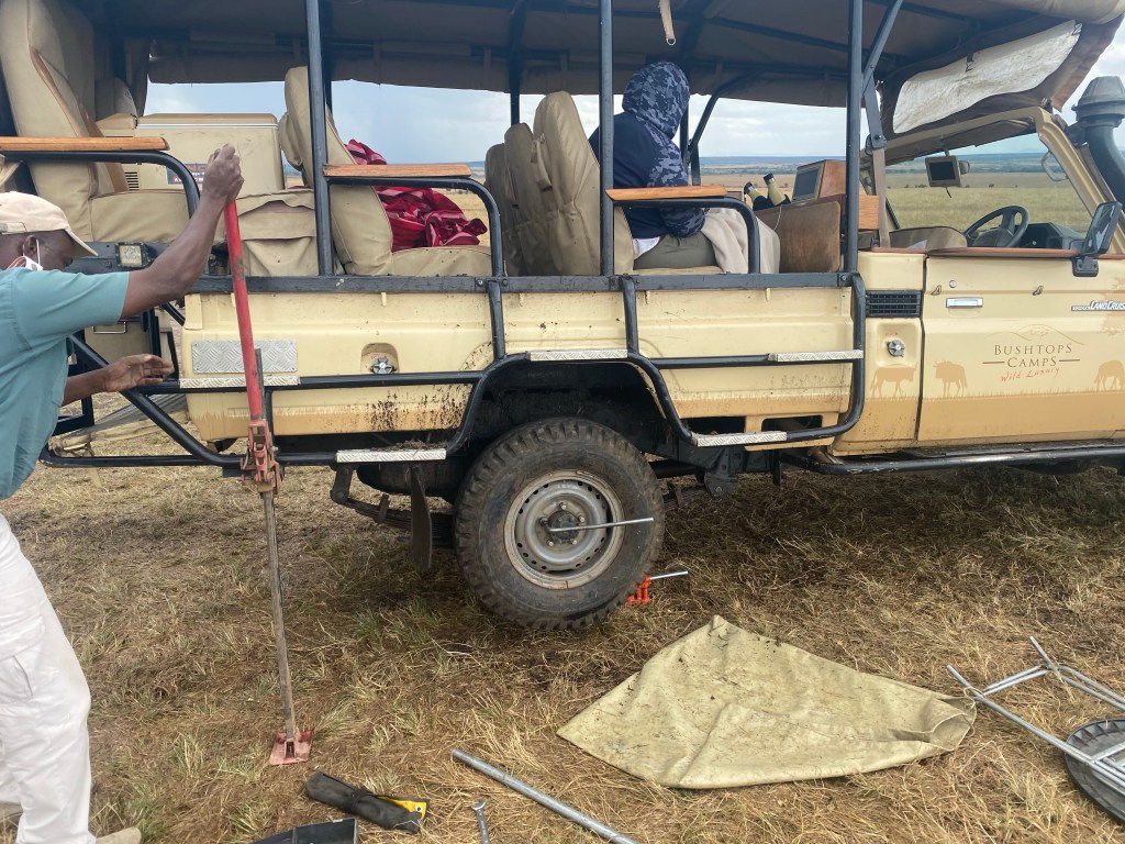 Mornings on Safari come early – the best light, the best animal activity, and the best temperatures are at dawn and dusk. But ballooning took that to next level, as we got up at 0400 for our 0430 departure to the launch site. We were picked up in an old Land Rover (first time we were not in a Land Cruiser) and began the slow crawl out of the Mara Bushtops reserve. It was *really* slow, which I put down to the driver trying to keep us comfortable, but once we hit the pavement and the car only barely sped up, I realized it was just the nature of that beast.
