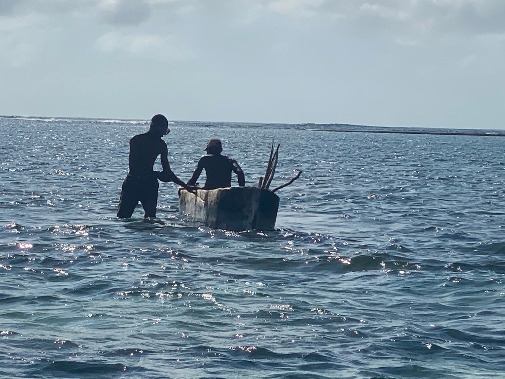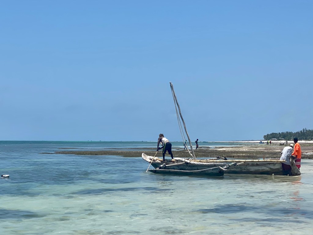 On the way back up the mooring we took our safety stop, and another group was coming down the mooring. I hadn’t seen this before, but it was super interesting watching this family descending. There was a 12 year old boy who was just killing it, and his dad really struggling with buoyancy control. Generally just interesting to watch the dynamics while Saidi and I hung out. We surfaced and our boat was tied to the stern of the other dive boat, so we swam past both as I listened to Saidi and the captains chatting with the other crew in Swahili.