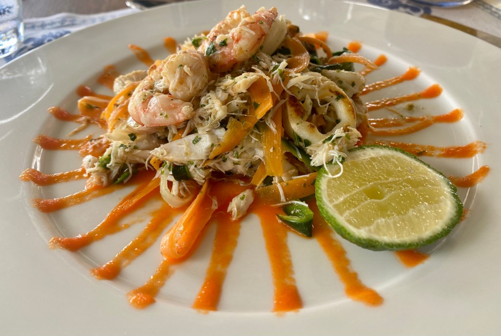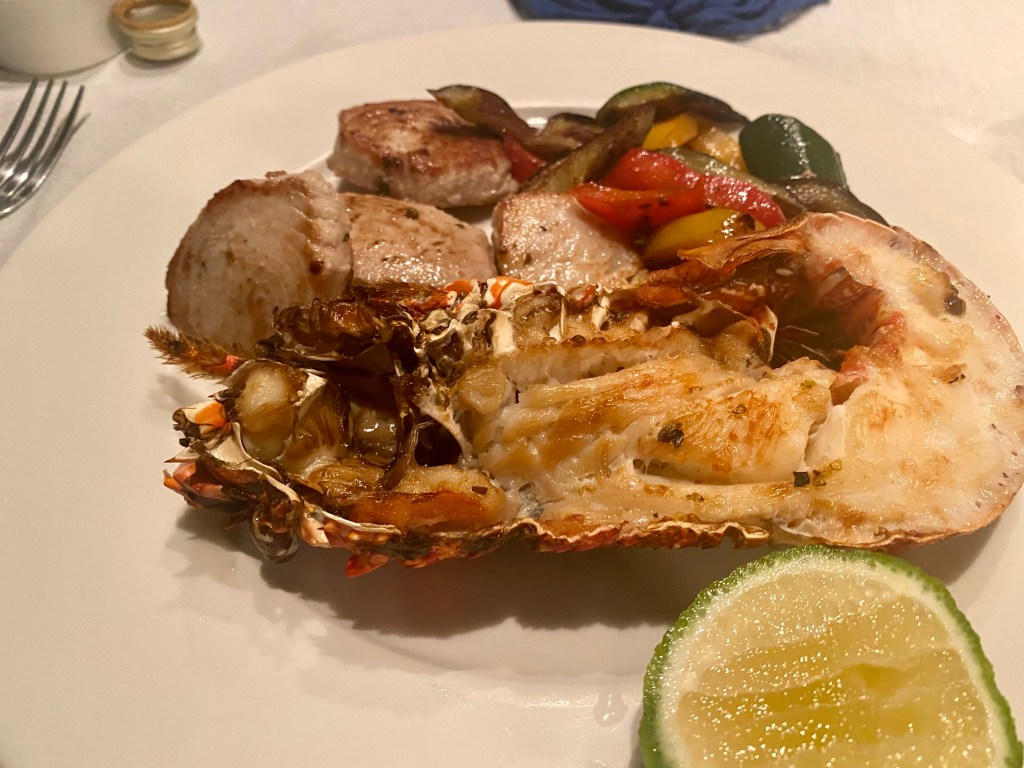 Sofia is a blast – an equestrian, surfer, diver, traveller, and of course proprietress for the property, and the conversation went until about 2030 when she excused herself so we could have dinner. This time was an amazing seafood salad served in big oyster shells. So good.