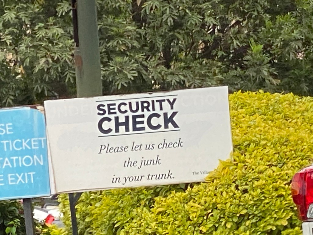 I had read that Market Village was good for souvenirs (and nearby) so I asked Patrick to take us there. It was basically just a mall. A mall with some amusing security signs, like “over 900 cameras are keeping you safe!” and this gem: