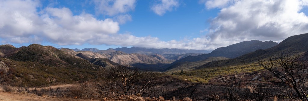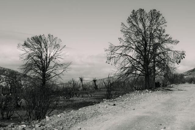 Trees blackened by firesNot everyone was in a hurryCareening towards Lorenzo CardenasA fire on way to Lorenzo Cardenas