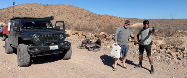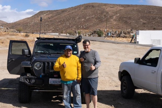 Antes de decir adios a Jorge, se pregunté sobre la ruta que planeamos para ir a San Felipe (no tuvimos tiempo para ir mas lejos) y decia que no, la carretera estuviera mas rapido y mas comodo y nuestra ruta solo tendra arena y protuberancias y es solo para los carreras… miró a mi, y a el jeep, y decia – si, una ruta perfecta para ustedes!
