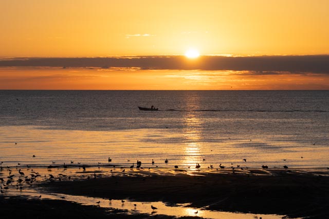 Hoy fue un otro dia maravilloso. Me llevanto temprano y caminé para la playa para ver el amanacer. Andando por el malecon, vi trabajadores poniendo luces sobre el calle, y los pescadores poniendo sus barcos en el mar.
