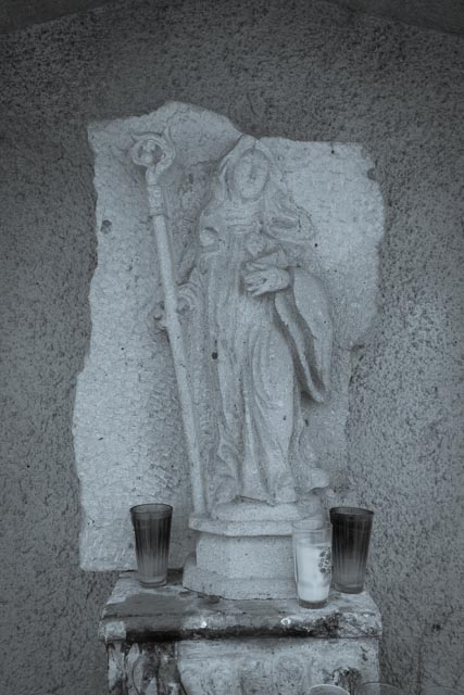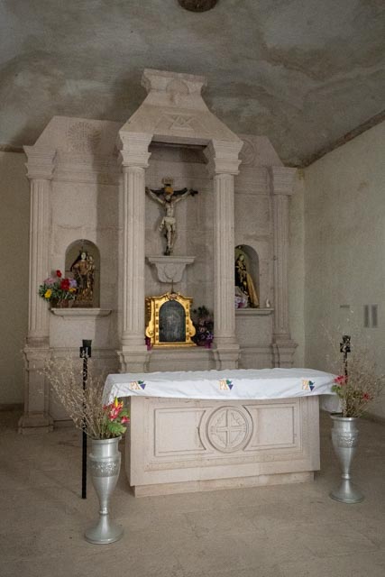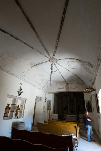 Despues de cruzar otro arroyo (pequena y mojada este vez) submios entre unas casitas y vimos el Mision Sta Gertrudis. Fue un momento emocionante.
