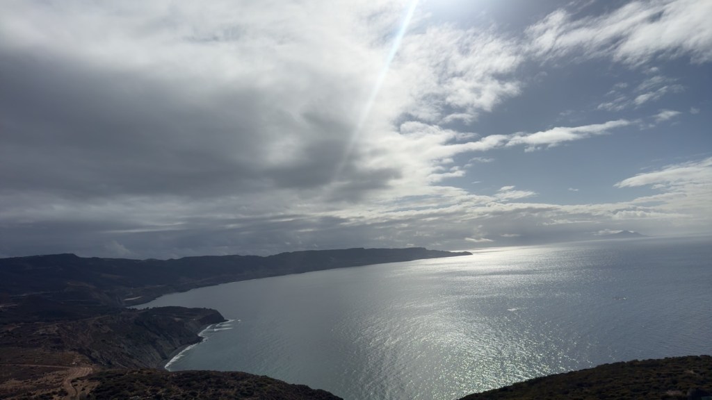Cuando cruzamos la frontera creimos que alguien nos parara, pero aparte de una foto, ninguna persono queria charlar con nosotros – y por eso seguimos la carretera para Rosalio, y al Ensenada. Las vistas fueron increibles . . .
