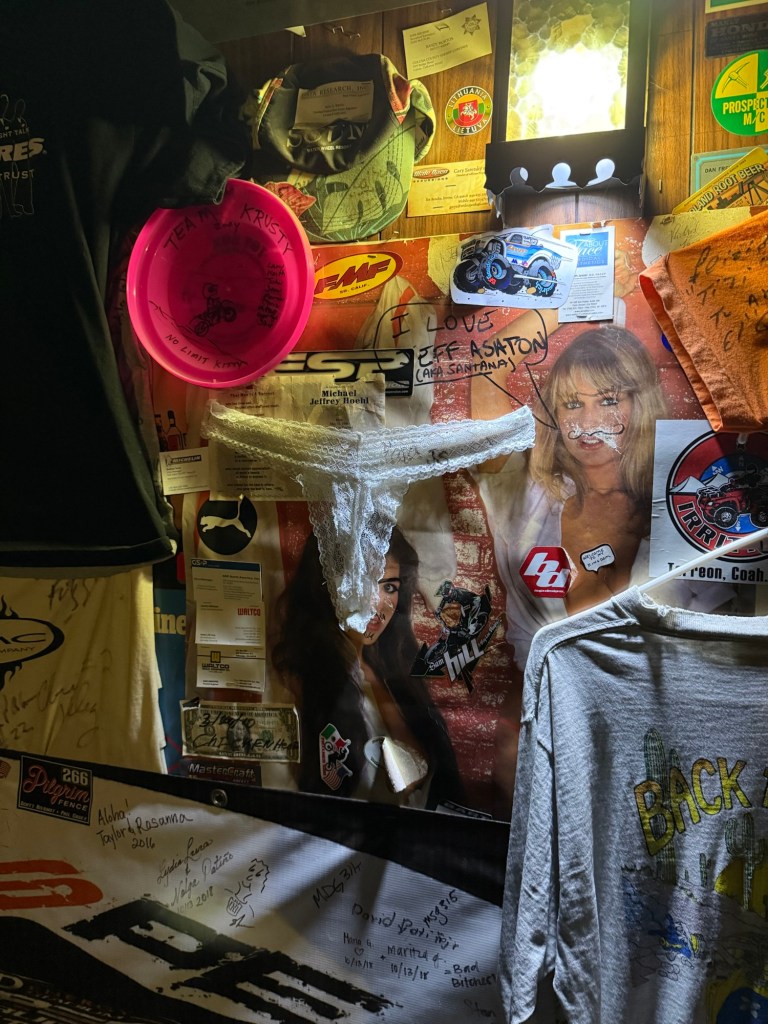 Despues 30 millas, mas o menos, llegamos a Mike’s. Esta un lugar increible pero vacio por que el mayor parte de su negocio es en el verano. Es cubrido con cosas de los equipos de carrera Baja 1000 que pasa por aqui.