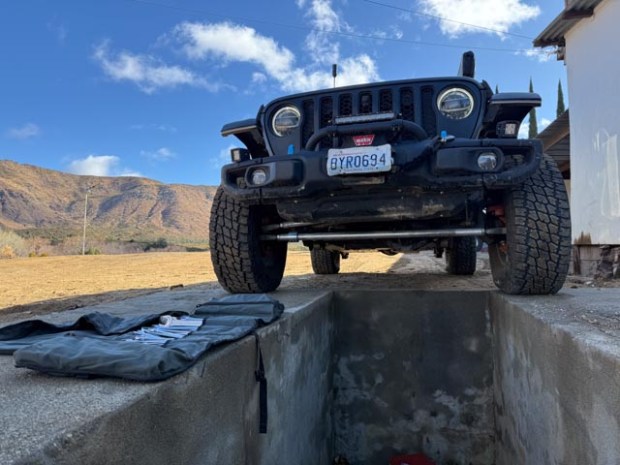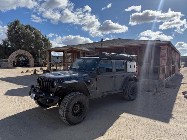 Ayer, la manana siguente, empacé el Jeep (mejor cada vez!) y empezé a prepararlo para cuzando la frontera – poniendo agua en mis jarras (tengo 11 gallones – 8 exterior, y 3 interior).