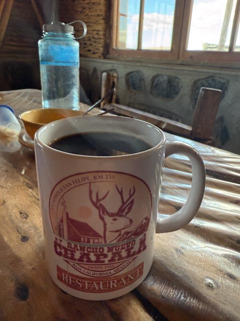 Despues, regresé a mi cuarto para poner el blog para dia 6, tomar cafe, y cargar el jeep. Dylan y yo salimos cerca las 10 de San Felipe, y despues asegurando gasolina tomamos la carretera 5 para mas de dos horas hasta “Rancho Grande” en donde paramos para gasolina y internet.