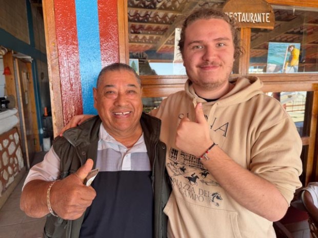 Despues de eso solo manejamos para La Paz, y la casa que he alquilado aquí. Descargamos el jeep adentro de la casa, y fuimos para el malecón para cenar. Conocimos a un hombre de Leschi en un FJ viejo con un perro chingon.