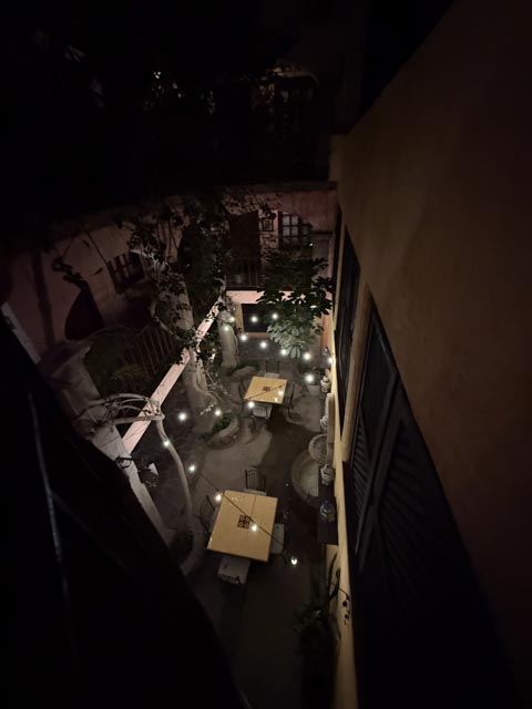 Como es mi costumbre, fui temprano del hotel para ver la Mision de Loreto. Fue Domingo, y por eso tuvieron servicios y no entré a la iglesia, solo al patio afuéra.